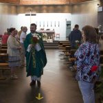 Wzruszeni, pełni wdzięczności dziękowaliśmy naszemu proboszczowi za wspólny dany nam od Boga czas. Podczas Mszy św. w niedzielę 21 czerwca o godz. 9.00 zrobilśmy to w sposób szczególny z udziałem dzieci, o godz. 10.00 z udziałem chóru i o godz. 11.00 zespołu muzycznego. Bezpośrednio po Mszach św. ks. Wojciech zaprosił na pożegnalnego grilla i tradycyjną lampkę szampana.