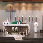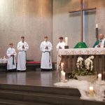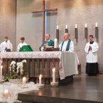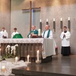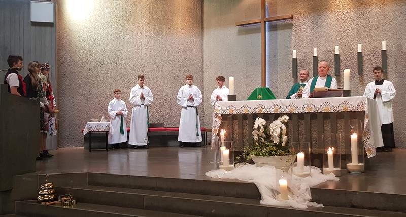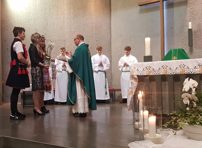 Na trzech porannych Mszach św. były kwiaty, upominki oraz ciepłe i serdeczne życzenia. Kulminacyjną była jednak koncelebrowana Liturgia o godz.11.00 podczas której młodzież powitała ks. prob. Zbigniewa Stokłosę tradycyjnie chlebem i solą, a ks. Jan Wowra modlił się w imieniu całej Wspólnoty, aby Maryja, Matka Kapłanów, otaczała naszego nowego Pasterza płaszczem swej matczynej opieki.